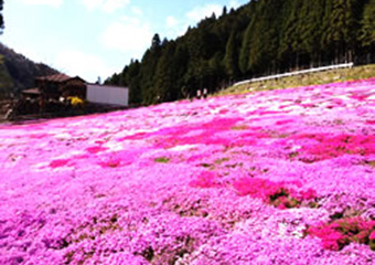 養蚕が盛んであった昭和36年頃、当時桑畑であったその片隅に、ひとつかみの芝桜の苗が植え付けられたのが始まりで、今では長年にわたる手入れの甲斐もあって約2,500m2もの敷地には毎年四月中旬頃になると、白や桃色が散りばめられた花のじゅうたんに魅せられます。 平成4年「農林水産大臣賞」、平成8年「内閣総理大臣賞」を受賞しました。