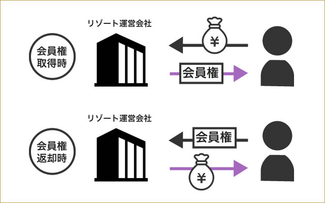 施設の所有権を持たず、利用する権利をご購入いただくことでリゾートクラブをご利用いただく契約形態です。