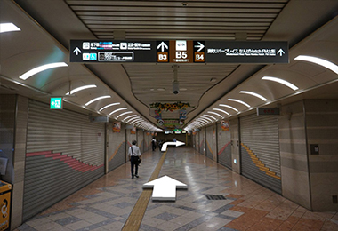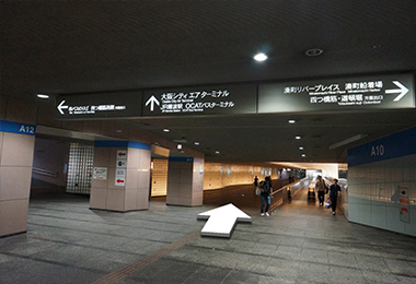 ①地下鉄御堂筋線難波駅改札から22番出口の方に進みます。