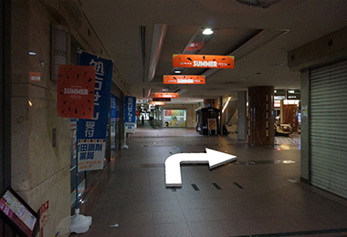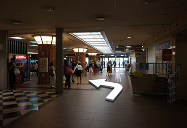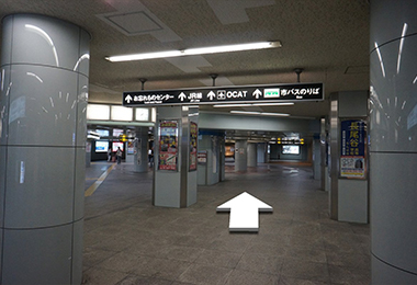 ⑨突き当りをOCATバスターミナル看板に向かうように左へ。