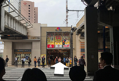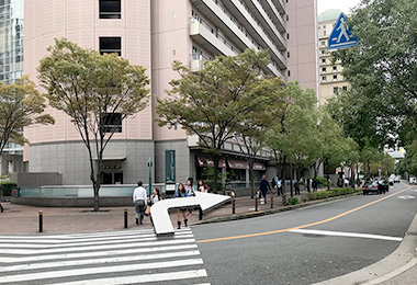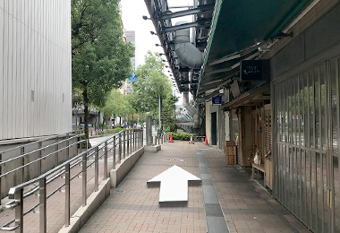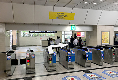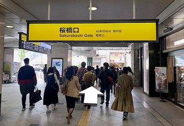 사쿠라바시 출구쪽 개찰구에서 나와 오른쪽으로 향합니다.