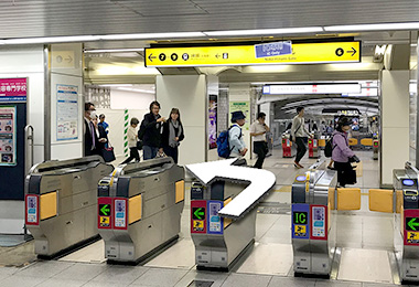 ①改札から出て7-9番出口の方に向かいます。